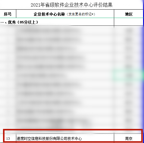 喜报 | 2021年省级软件企业技术中心评价结果公示,速度中国以“优秀”评分顺利通过。
