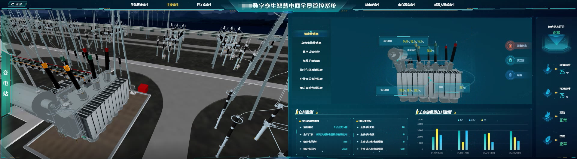 通过三维数字孪生的手段,能够复现变电站与配电房内的所有设备设施模型,接入设备基本信息、历史数据、运行数据、试验数据、缺陷数据等,构建设备状态可视化管控应用,实现变电设备“一张图”管控。