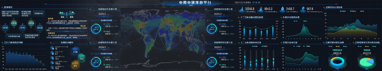 通过对电力能源行业化石能源发电量以及各类零碳能源发电量等相关数据的监测、计算与分析,获取碳排放量、碳排放强度以及碳减排量等关键指标,结合政策及其他相关因素分析,以可视化形式展示出整个电力行业的碳排放趋势以及碳减排工作成效,助力“碳中和”。