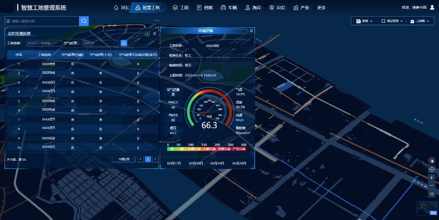 在施工现场合理布设监测点,全方位实时监测工地环境,同时可对工地现场的裸土未覆盖、扬尘噪声超标、车辆未冲洗、施工垃圾乱倒等现象进行智能化监测与预警,采取科学合理的保护与处置措施,优化施工环境,实现工地环境的安全、环保、健康和符合监管要求。 |