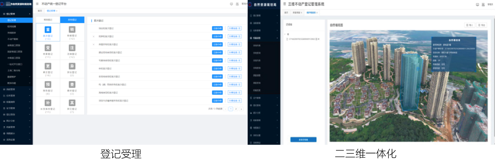不动产权籍调查管理系统实现不动产登记的图属数据的标准化入库、管理,支持多种格式的矢量空间数据入库,半自动化提取生成权籍属性数据,便捷化管理房地图属变更,包括宗地、房屋、构筑物、林权、宗海、土地承包经营权调查变更管理,楼盘表管理、图件管理、报表统计、历史案件查询等功。同时支持生产三维不动产数据,为三维不动产平台建设奠定基础。