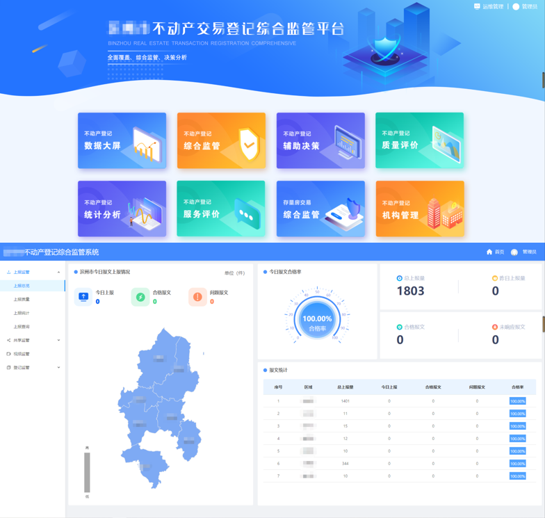 不动产交易登记信息监管平台,通过对不动产登记数据的管理,遵循国家标准建立多级分类编码体系的多粒度数据库,在海量不动产登记数据库中使用数据引擎对不动产登记信息动态、产权变动情况、交易情况和有关价格数据进行日常监管。平台以各级不动产登记数据库为基础,以信息网络为纽带,以标准、制度和安全体系为保障,以不动产登记的检查、上报、监管等模块为主线,形成了网格式的业务管理、决策支持和社会服务信息化体系。为不动产登记监管、经济宏观调控提供了强有力的监管数据支撑,为保护公民合法权利、完善不动产登记市场等提供了技术保障。