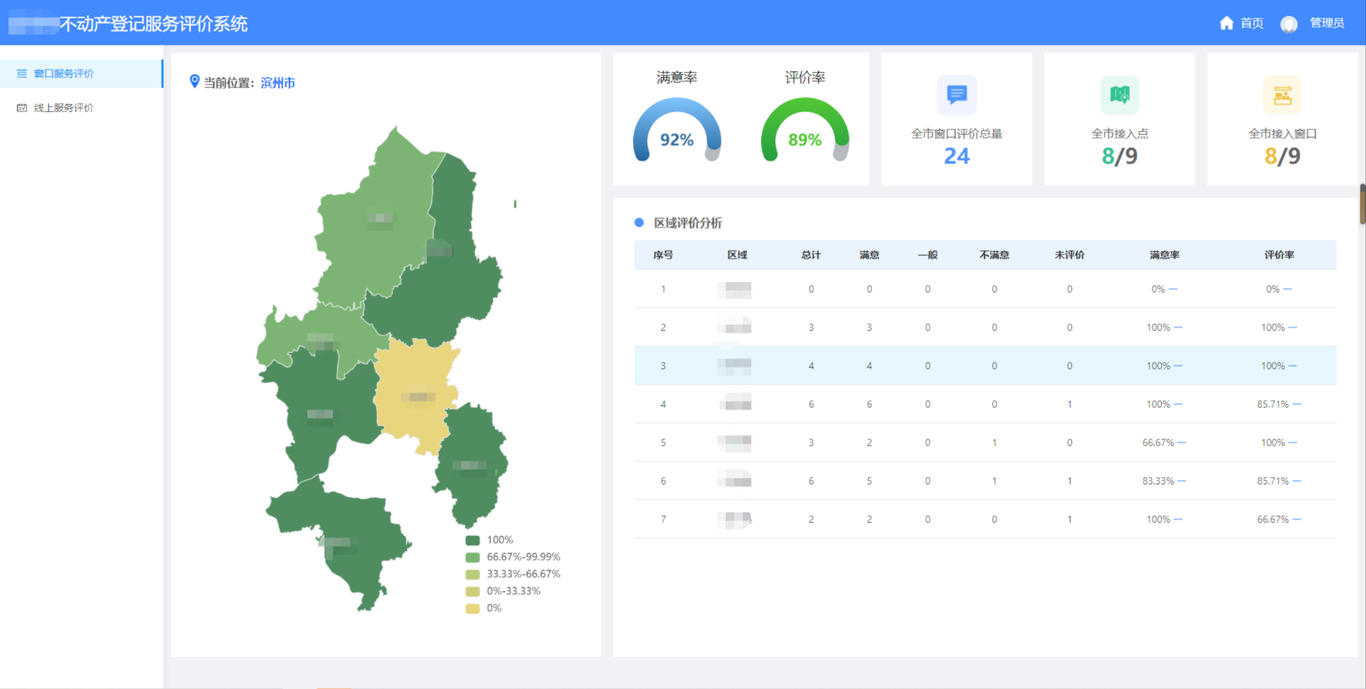 通过收集的登记数据和服务评价数据按上报质量、登记质量、服务评价维度对各区县进行评价,根据国家、省、市工作要求制定评价规则,直观查看登记工作的成绩。
