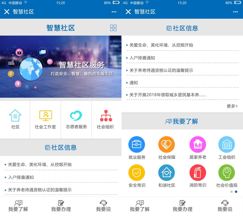 以社区相关数据为信息基础,提供社区医疗、住房保障、居家养老、劳动就业、业务申报、案件投诉、文体教育等多样化服务功能,为用户提供信息浏览、查询、宣传和业务指导等人性化服务。