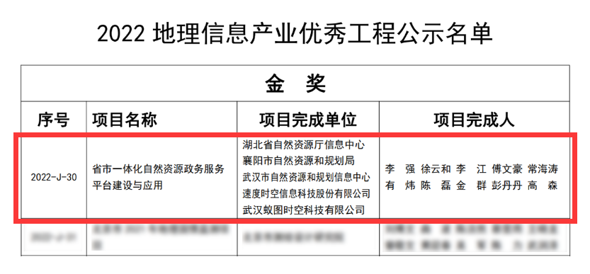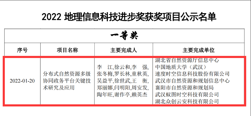速度中国凭借卓越的自主创新实力和坚实的服务保障能力,在自然资源领域全面深耕、持续发力。日前,经中国地理信息产业协会公示,由我司与湖北省自然资源厅联合申报的多项科技创新项目及成果,经申报、审查、网评、答辩等程序,分获“地理信息产业优秀工程金奖”及“地理信息科技进步奖一等奖”,实现多点突破。
