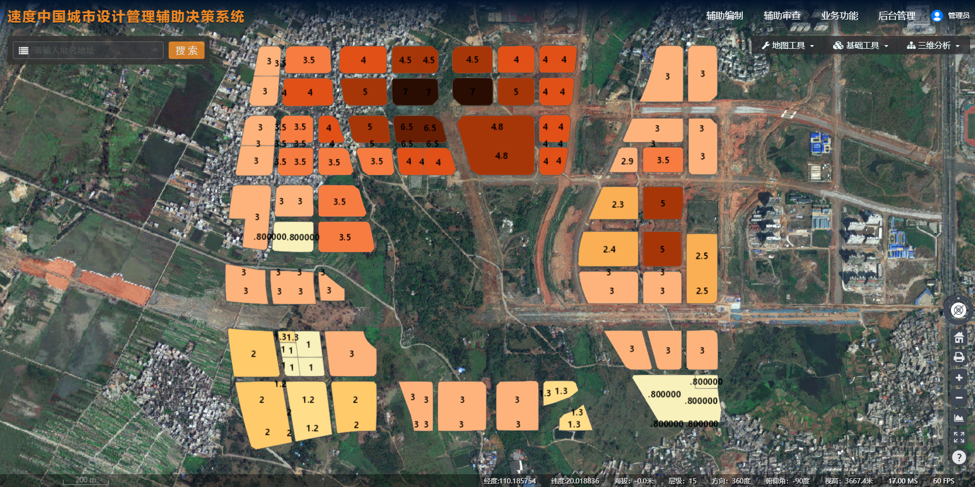 速度城市设计管理辅助决策系统综合运用三维GIS等信息化技术,服务于城市设计的方案设计报建与审查决策等多个环节,一方面为设计人员提供科学的信息支撑,另一方面可以提高城市设计主管部门对评审方案分析论证的科学性,能够更好的指导城市设计的规划管理及城市设计成果的应用。