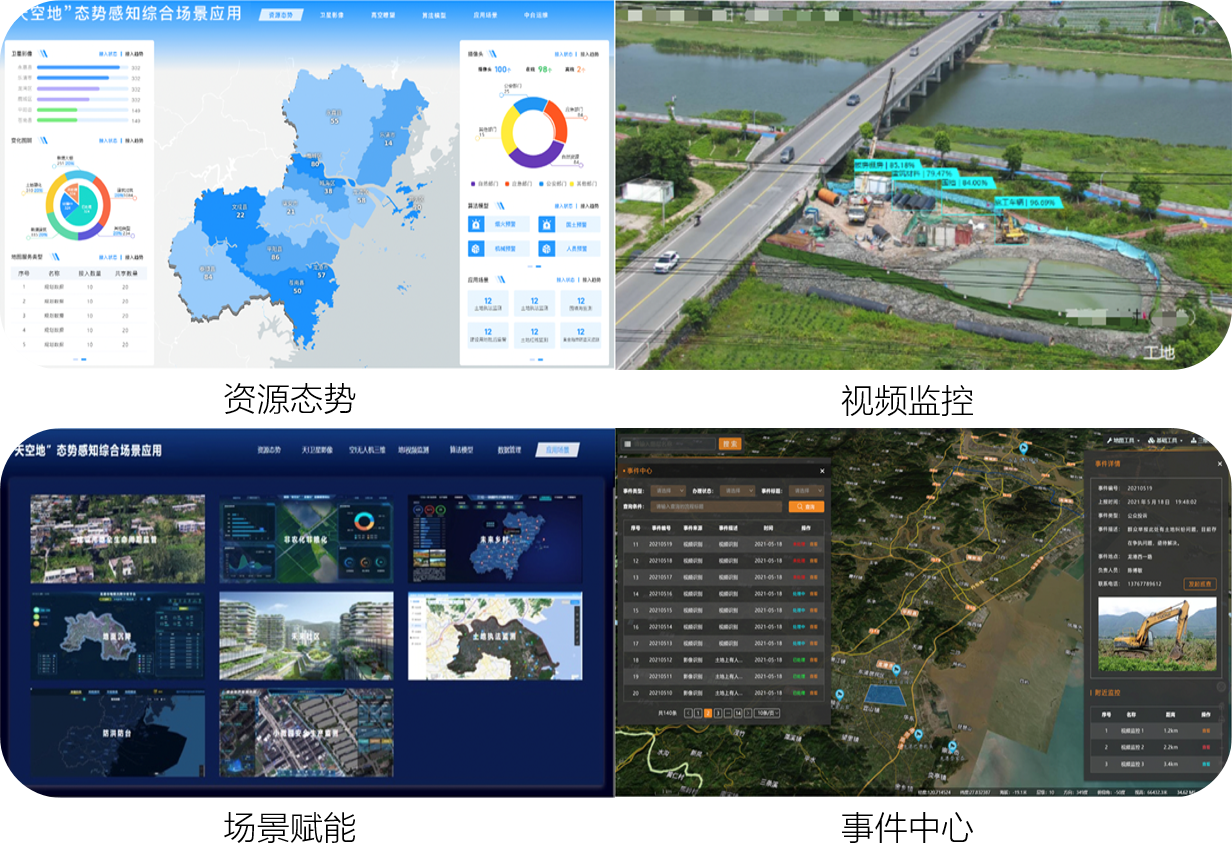 “天空地”态势感知综合场景应用,通过实时立体监测和人工智能大数据分析,构建立体态势感知体系,实现跨部门、跨层级的监测监管、分析研判、执法督办和决策指挥全流程监管,用数字化手段推动问题处置和整改,构建部门合力、上下协同的自然资源监测监管机制;实现违法违规行为的“早发现、早预警、早制止、早处置”,提升城市治理现代化水平。